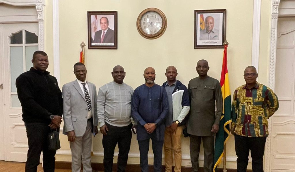 On Thursday, 5th February 2026, Officers from the Ghana Police Service paid a courtesy call on H.E. Prof. J.S. Korantwi-Barimah to brief him on their mission in Egypt, which is their participation in a training course at the Egyptian Police Academy, Police Research Center-International Security Training Center (ISTC), to further enhance their knowledge and skills. The course which includes training an a myriad of fields including cyber security, leadership, counter terrorism and strategic management & human resource seek to equip the officers with relevant skills to enhance their efficiency. Their participation in the course exemplifies the longstanding cooperation between Ghana and Egypt in the security field. #GhanaEgyptrelations